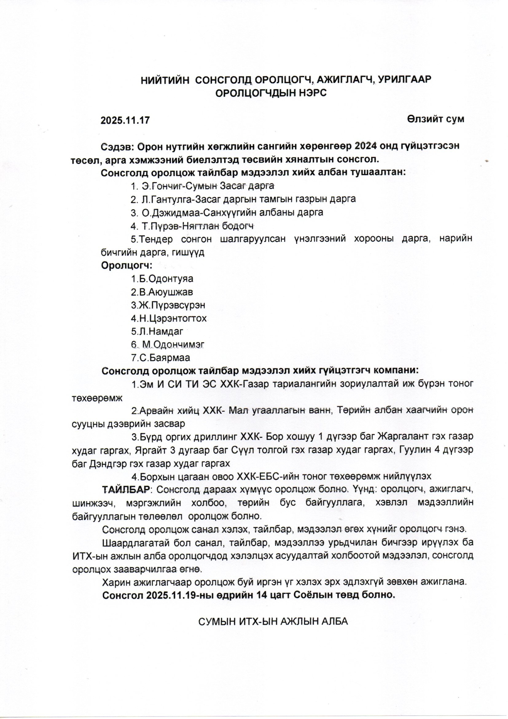 Өлзийт сумын ИТХ-ын 2021 оноос хойших тогтоол